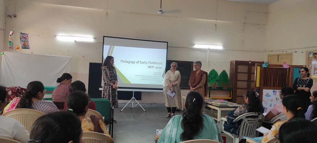 On April 13th, Ms. Poorna and Ms. Rashmika, Foundational Stage supervisors of both morning and afternoon shifts went for a training session at the Laboratory Nursery School – Chetan Balwadi, Faculty of Family and Community Sciences.