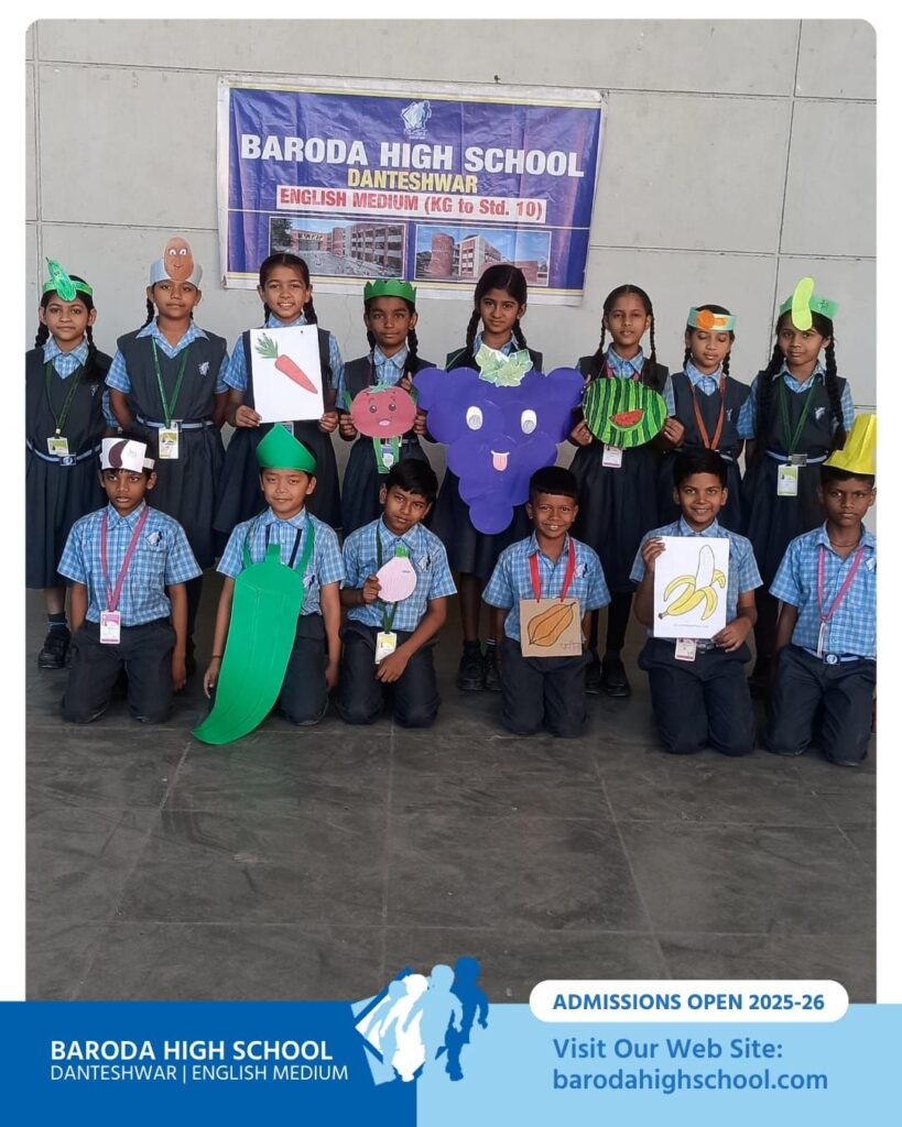 An engaging activity was conducted for Std III C, where students wore headgears representing fruits and vegetables and spoke about their importance. This fun and interactive session helped them learn about healthy eating in an enjoyable way.
